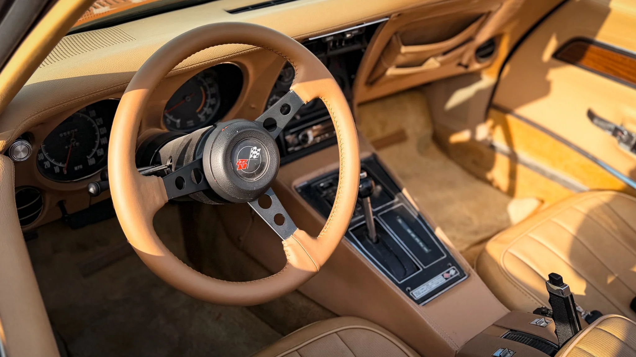 Under the hood sits the iconic 350CI V8 (5.7L), paired with a 3-speed automatic transmission for smooth cruising. This example also benefits from tasteful upgrades including an electric AC unit for improved comfort in warmer climates and an upgraded Pioneer sound system for a better driving experience. Finished with chrome bumpers, rims, and exhaust, it delivers the bold presence the Corvette C3 is famous for.