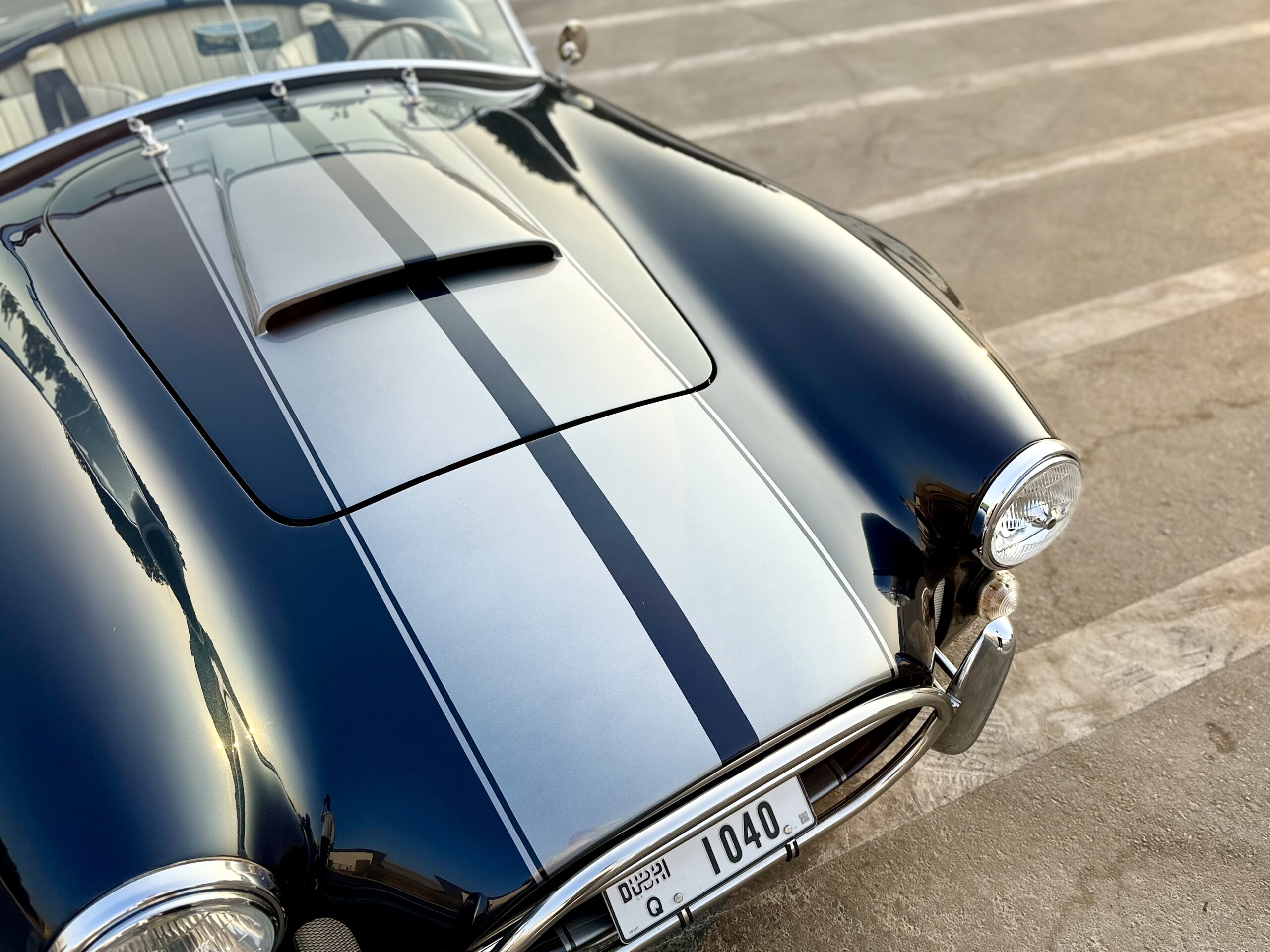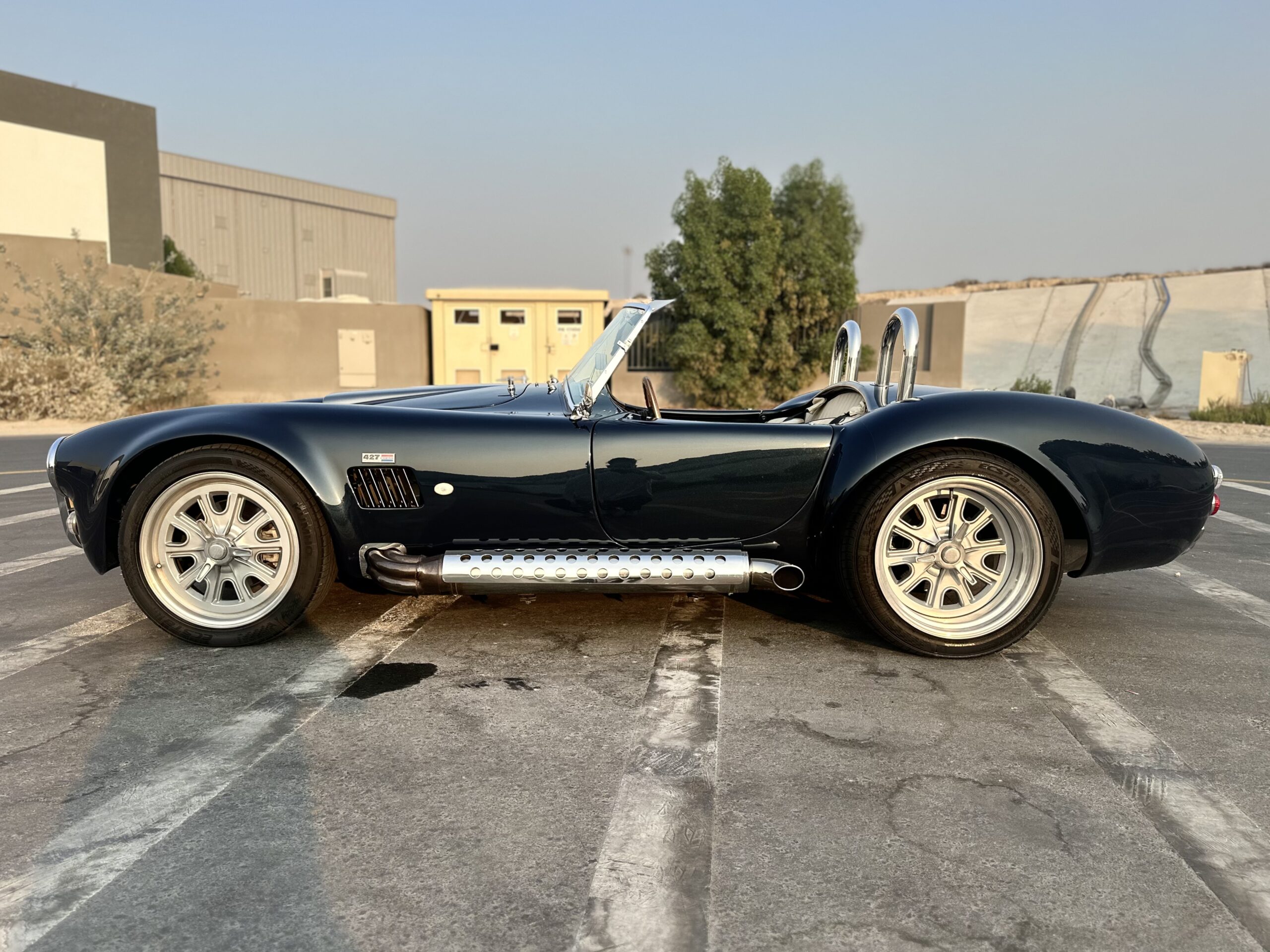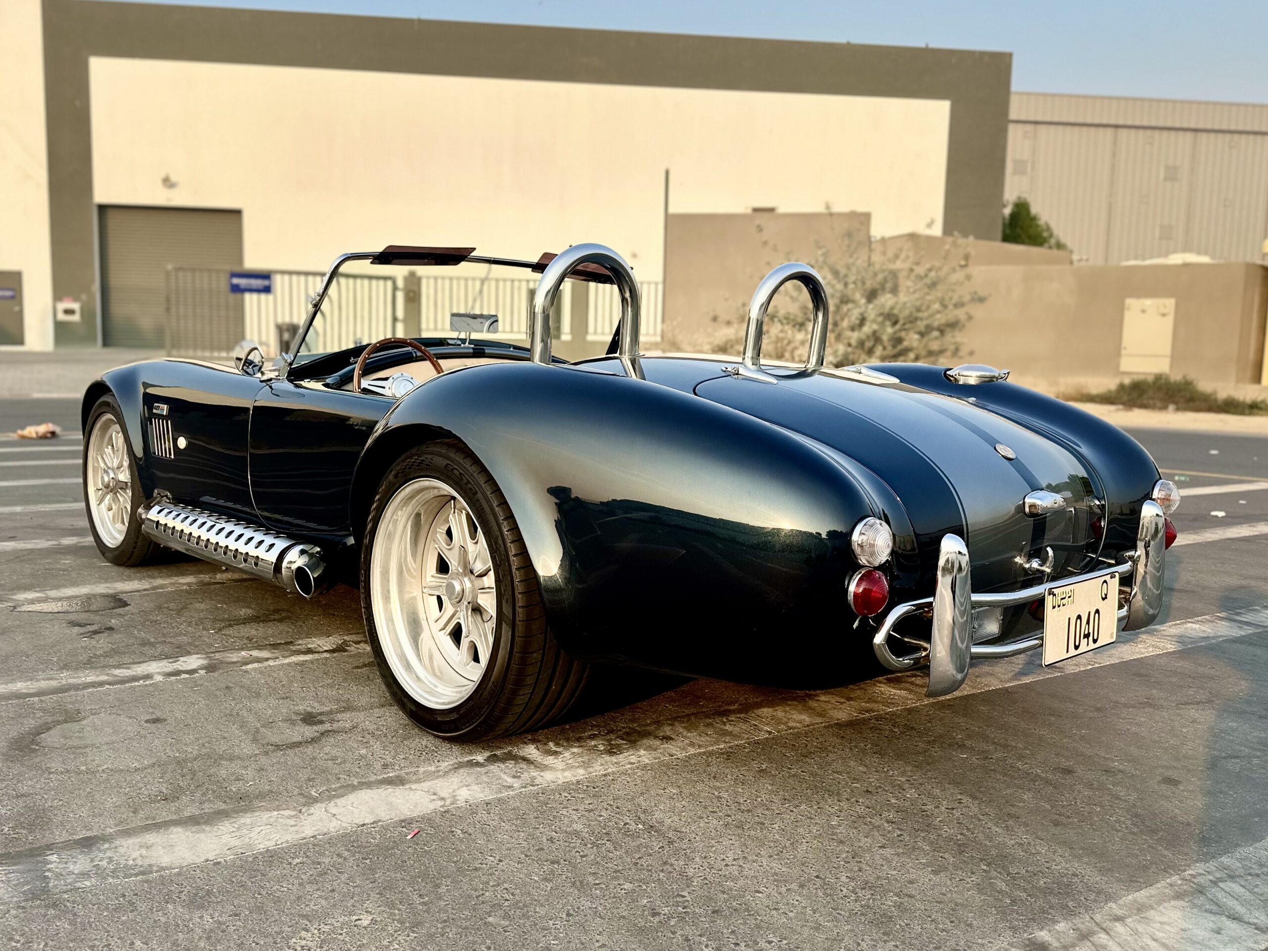 Shelby Cobra, imported from the UK with only 8,000 km mileage. Powered by a brand new Corvette LS3 6.2L V8 engine paired with a 5-speed manual transmission.THIS SHELBY IS A RESTOMOD CAR, SO NO CLASSIC CAR ISSUES, DRIVES PERFECT AND LOOKS CLASSIC BEAUTYOverview:This vehicle is a rare find, manufactured in 2015 by AK Sport Cars in the UK, not a local assembly. It’s the only one of its kind in the UAE, delivering incredible power and an exceptional driving experience.Specifications:Color: Navy Blue with Dual Silver Stripes