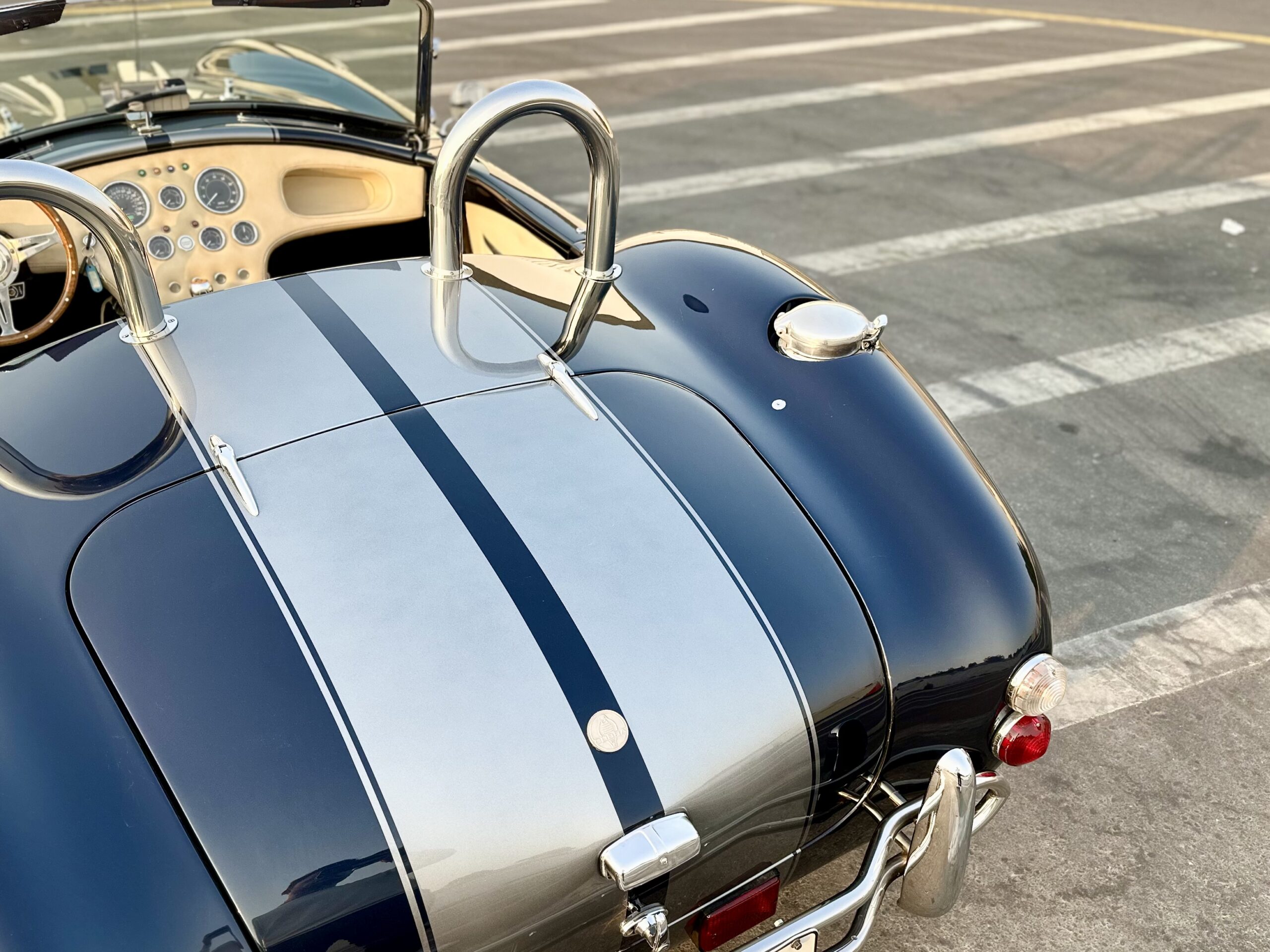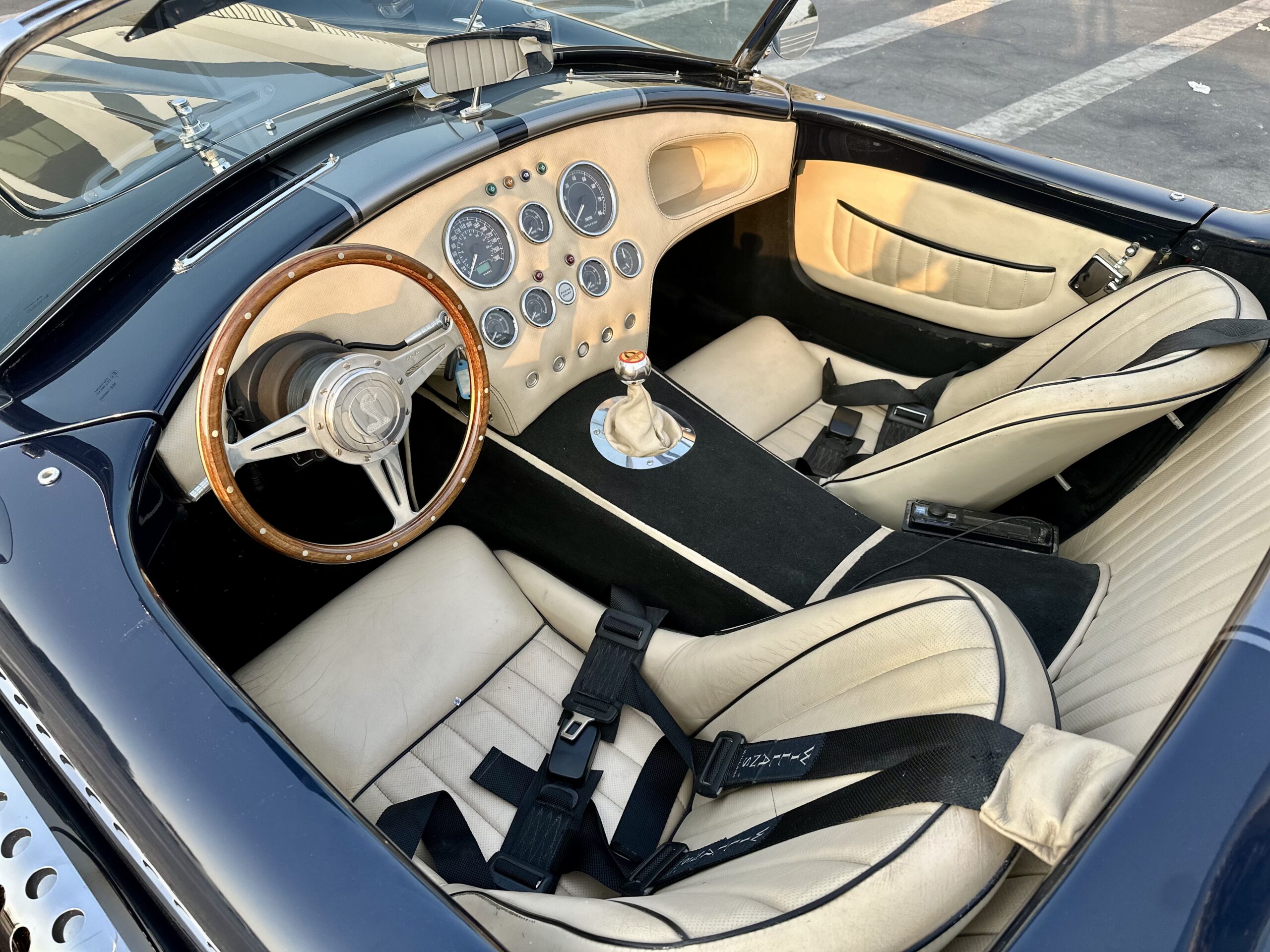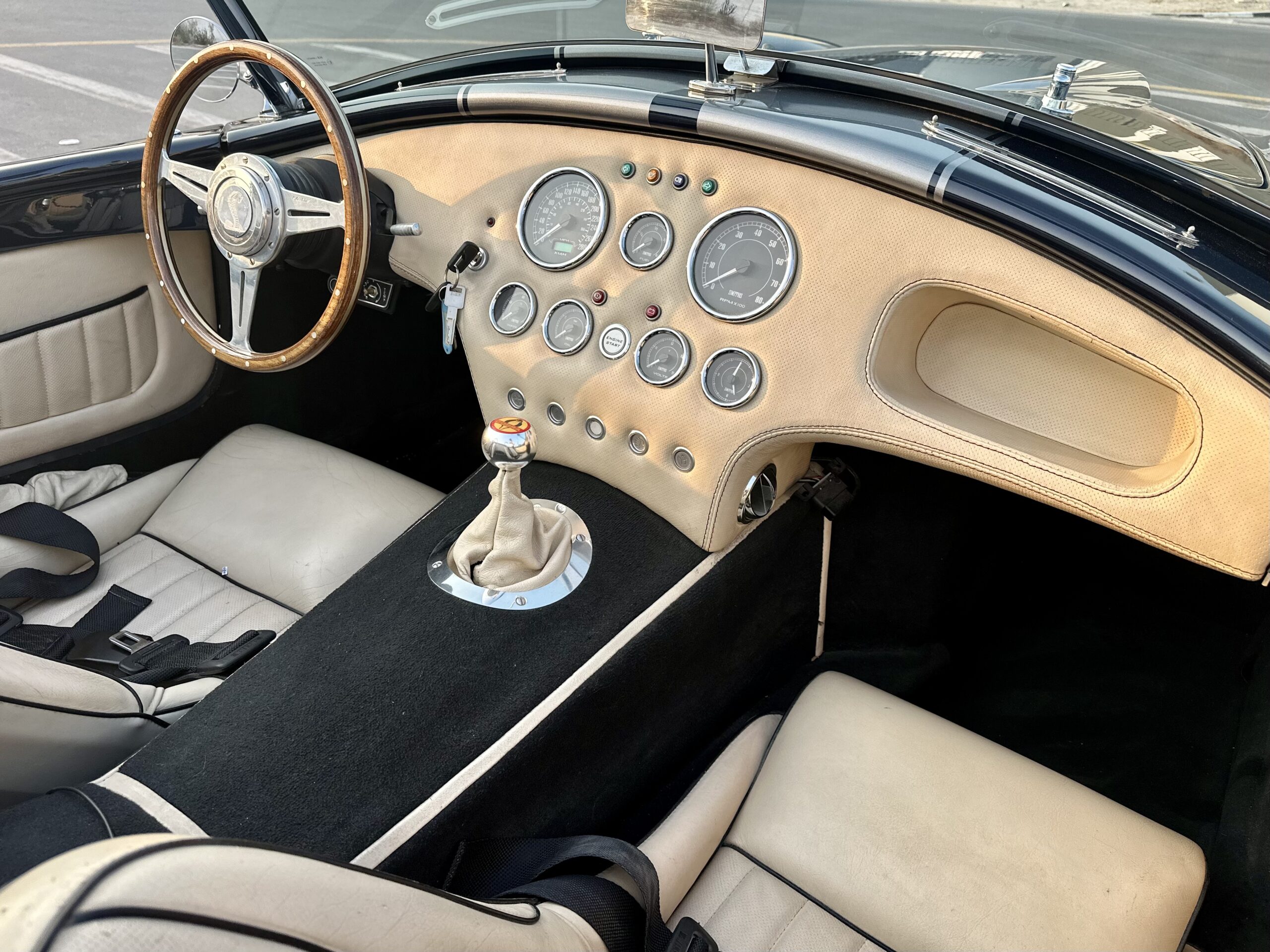 Shelby Cobra, imported from the UK with only 8,000 km mileage. Powered by a brand new Corvette LS3 6.2L V8 engine paired with a 5-speed manual transmission.THIS SHELBY IS A RESTOMOD CAR, SO NO CLASSIC CAR ISSUES, DRIVES PERFECT AND LOOKS CLASSIC BEAUTYOverview:This vehicle is a rare find, manufactured in 2015 by AK Sport Cars in the UK, not a local assembly. It’s the only one of its kind in the UAE, delivering incredible power and an exceptional driving experience.Specifications:Color: Navy Blue with Dual Silver Stripes