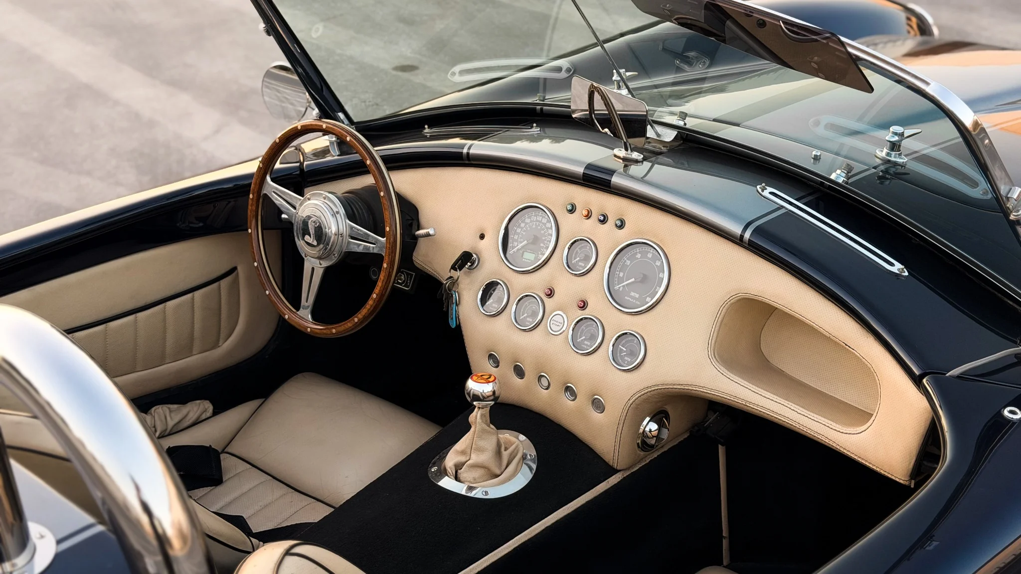 Vehicle information: Shelby Cobra, imported from the UK with only 8,000 km mileage. Powered by a brand new Corvette LS3 6.2L V8 engine paired with a 5-speed manual transmission.THIS SHELBY IS A RESTOMOD CAR, SO NO CLASSIC CAR ISSUES, DRIVES PERFECT AND LOOKS CLASSIC BEAUTYOverview:This vehicle is a rare find, manufactured in 2015 by AK Sport Cars in the UK, not a local assembly. It’s the only one of its kind in the UAE, delivering incredible power and an exceptional driving experience.Specifications:Color: Navy Blue with Dual Silver Stripes Roof: Factory Hardtop Roll Bar (Safety Chrome) Front and Rear Chrome Bumpers Side Chrome Exhaust with Headers Wheels: 18-inch Shelby Wheels with Kumho Tires Two Transparent Visors with Tint Upholstery: Beige Leather Steering Wheel: Classic Wooden Style 3-Point Seatbelts Chrome Roll Bar Air Conditioning System Accident-free, inspection guaranteed Perfect for collectors and enthusiasts looking for a high-performance classic with modern touches This rare Shelby Cobra combines vintage style with modern engineering, making it a standout piece for any collection.